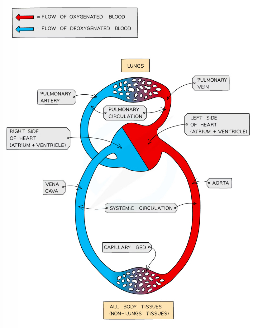 left side receives oxygenated blood from the lungs and pumps it to the body (systemic circulation)
