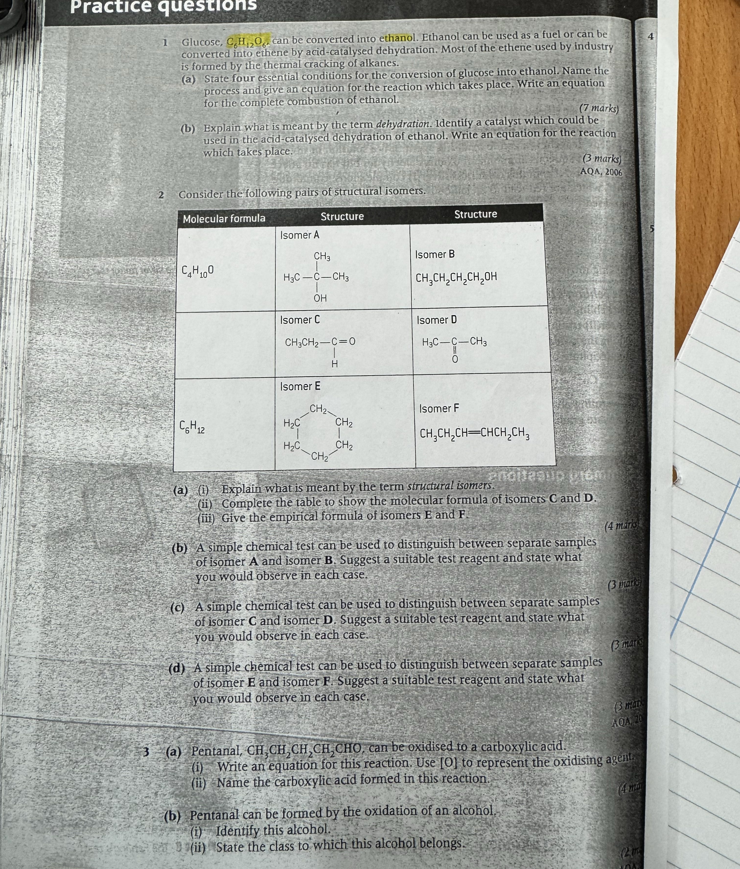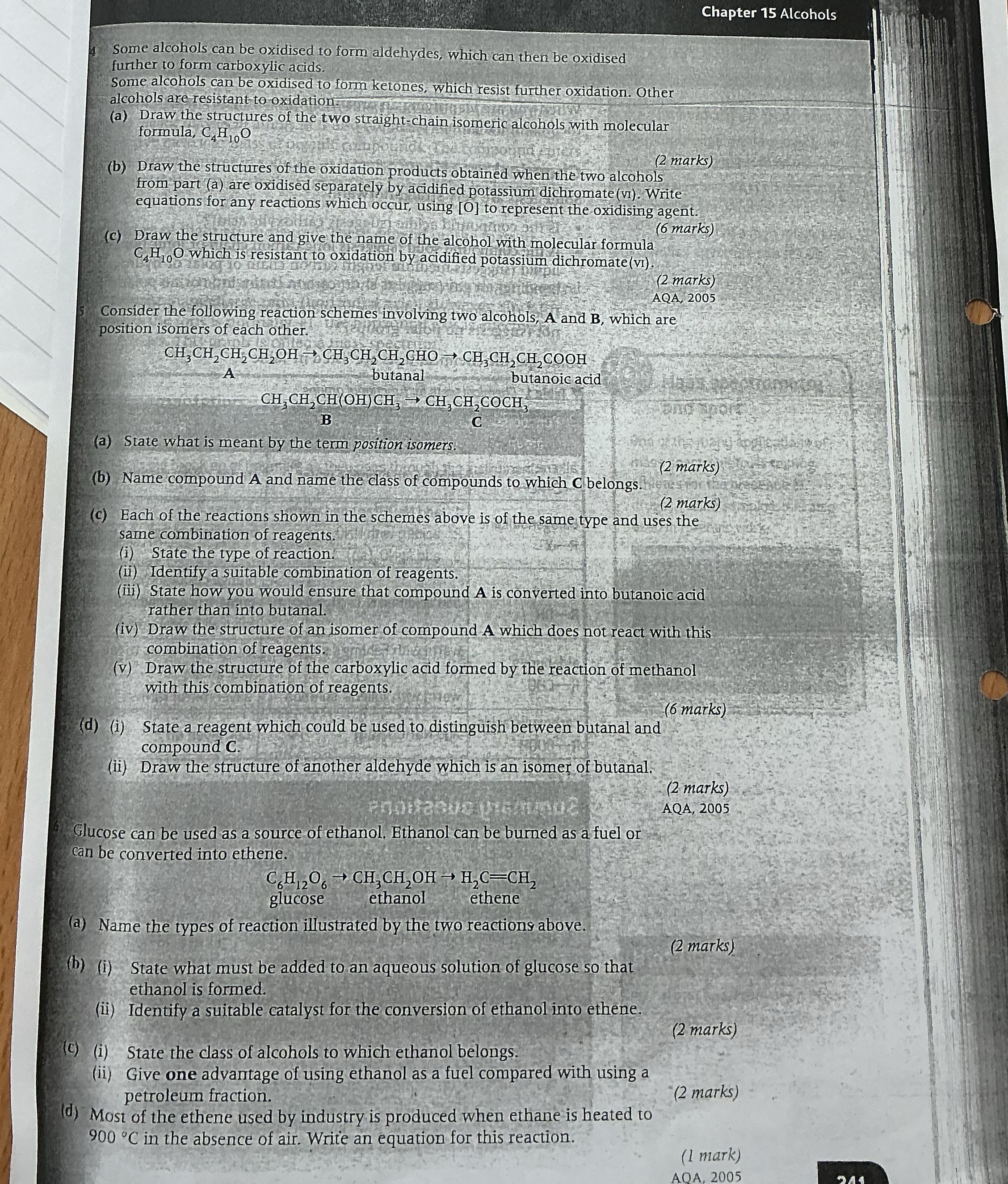 alcohol and organic analysis questions