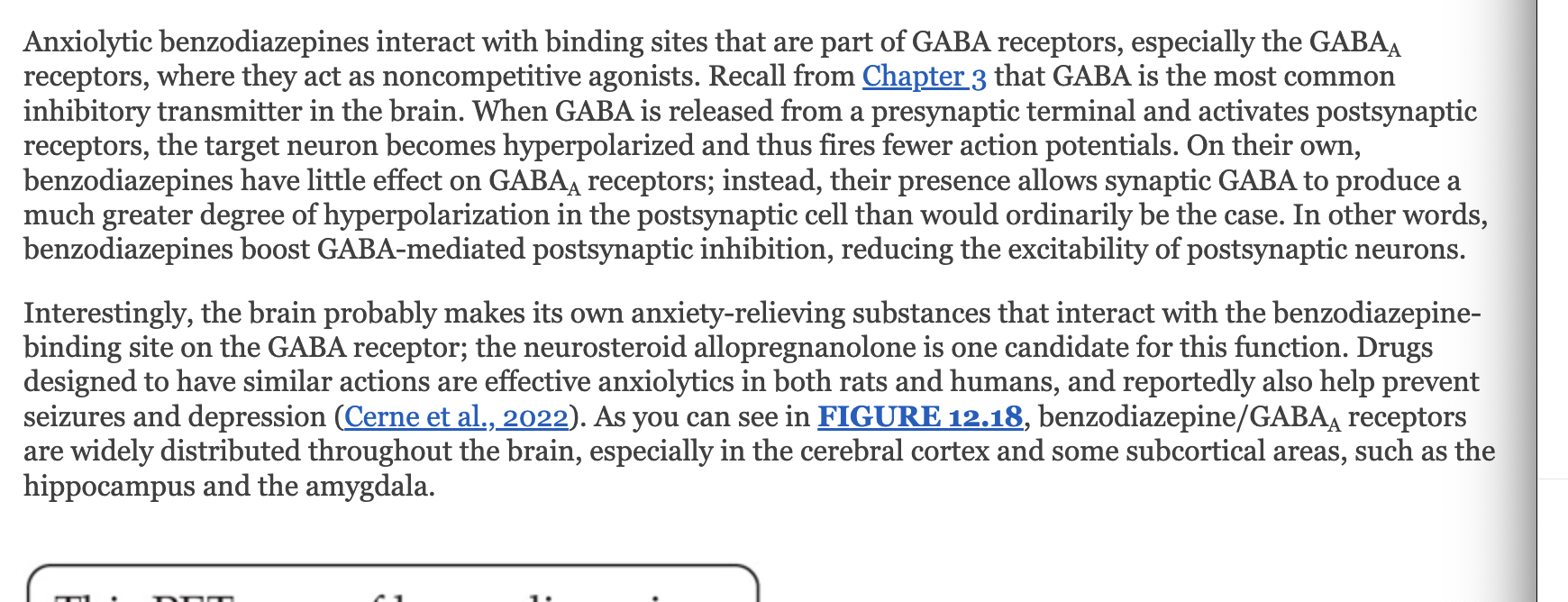 it interacts with binding sites that are part of gaba receptors liek gaba a where they act as noncmeptitive agonist. That gava is the msot common inhibitory tranmitter in the brain. whwne gaba is released from a presnaptic terminal and activates post nspative receptors, targe neuron beocmes hyperpolarized and fires fewer aciton poritneions.