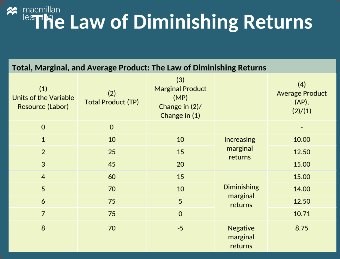 The Law of Diminishing Returns Illustrated: This principle describes how, after a certain point, adding more of a variable input (like labor or physical capital) while holding other inputs fixed will eventually lead to smaller increases in output per unit of the variable input.