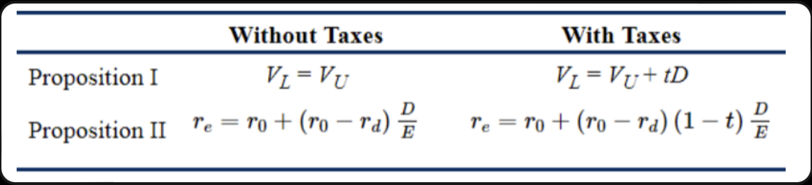 with taxes - p.1 gets modified. the more debt a company has, the more it benefits from tax savings, and thus more debt can increase the company’s value