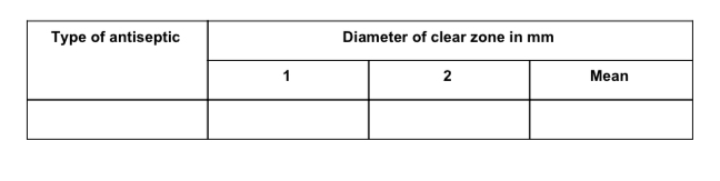Repeat the procedure with different concentrations of the same antiseptic on the filter paper discs to investigate the optimum concentration of antiseptic used to kill bacteria.