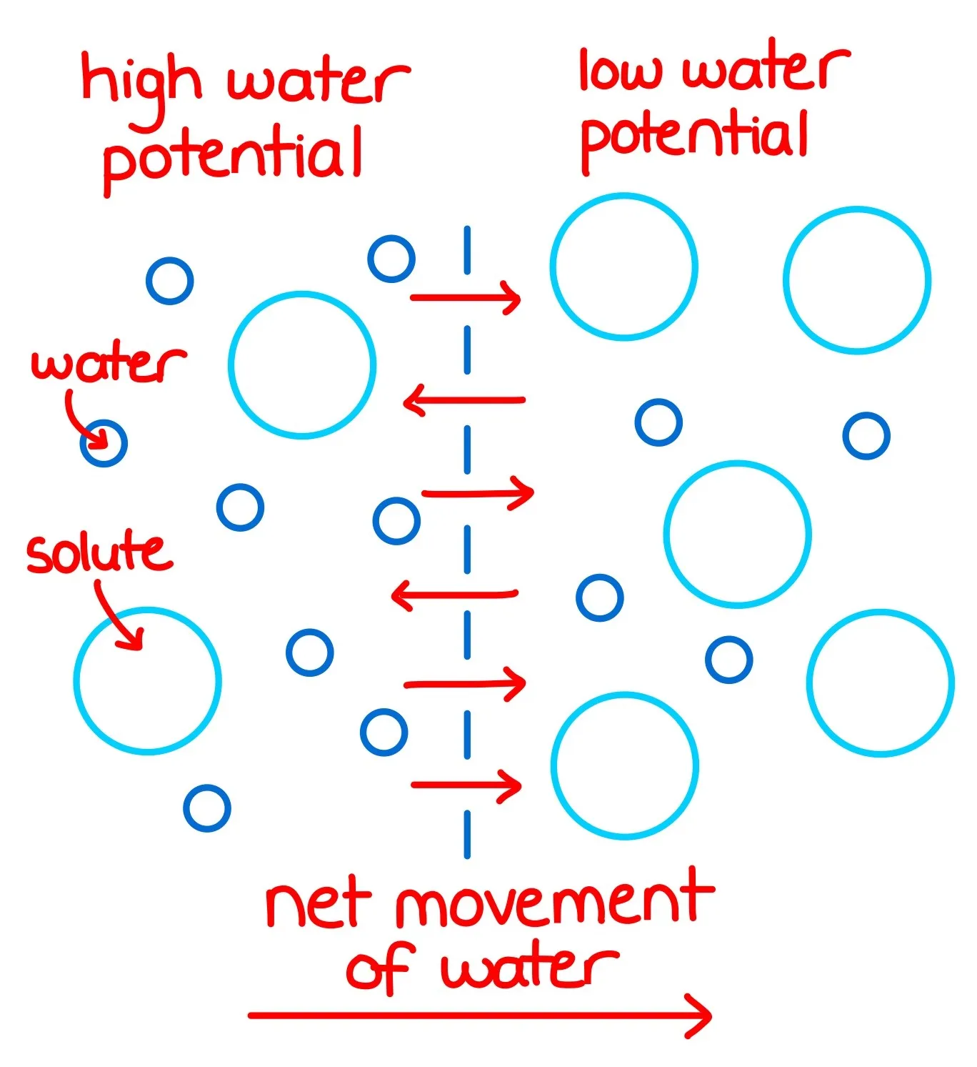 The HIGHER the number of solutes in a solution, the LOWER the water potential of that solution. (And vice versa)