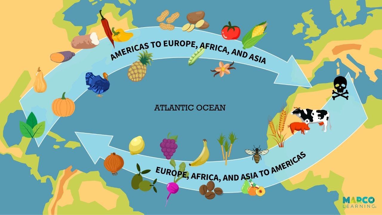 Exchange also involved plants & animals which transformed the landscape and made a European diet possible
