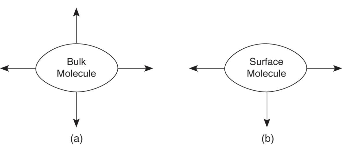 Surface tension is caused by an increase of attractive forces near the surface of liquid rather than near the center of the liquid
