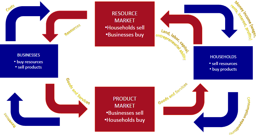 Resource Market: Households provide resources to businesses.