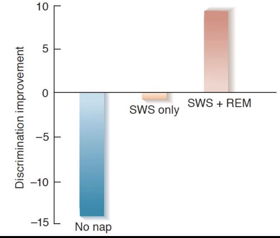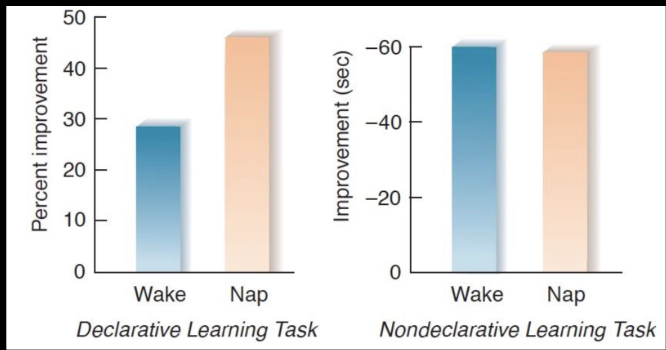 - Learning: 1. nondeclarative visual discrimination task, nap, Test→rem improved nondeclarative memory