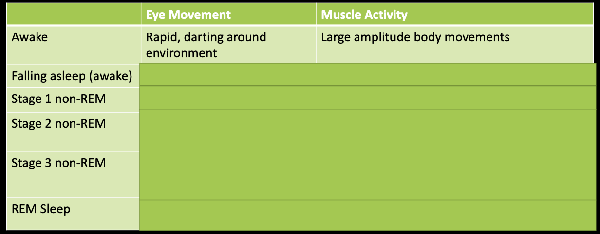- 3 key differences throughout sleep: brain waves, muscle activity, eye movement