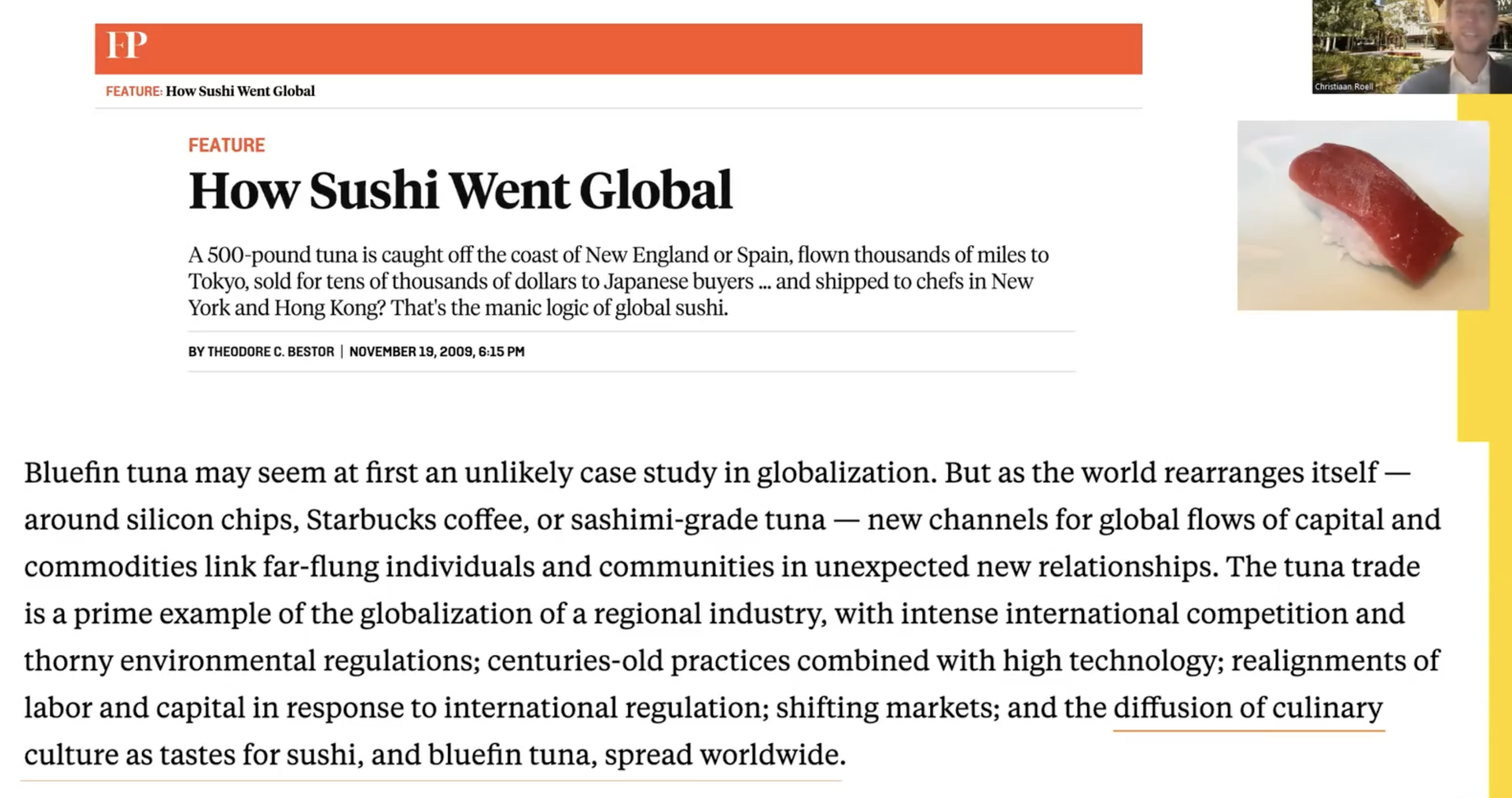 Sushi & bluefin tuna, as a result of globalisation, became an export of culture