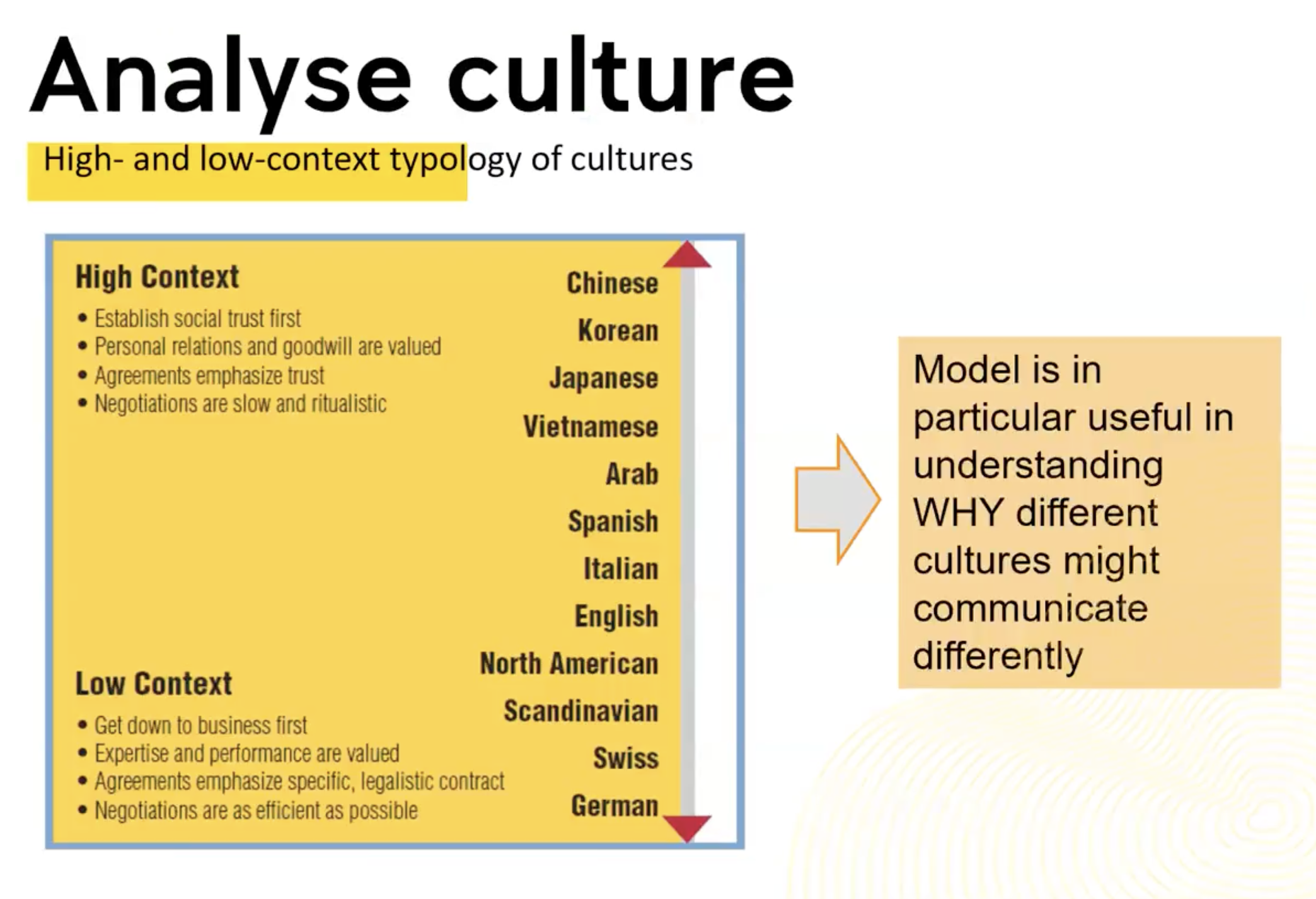 It becomes more of an issue or a problem when the German company wants to work together with a Chinese company. Now there's actually many successful German companies that operate in China. So it's something that you can certainly learn. But there are also very stark differences, right? And it's important to be aware of that before you go to a particular country. Watch the high and low context video on lecture slides.