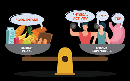 A fundamental principle of nutrition and metabolism is that body weight change is associated with an imbalance between the energy content of food eaten and energy expended by the body to maintain life and to perform physical work