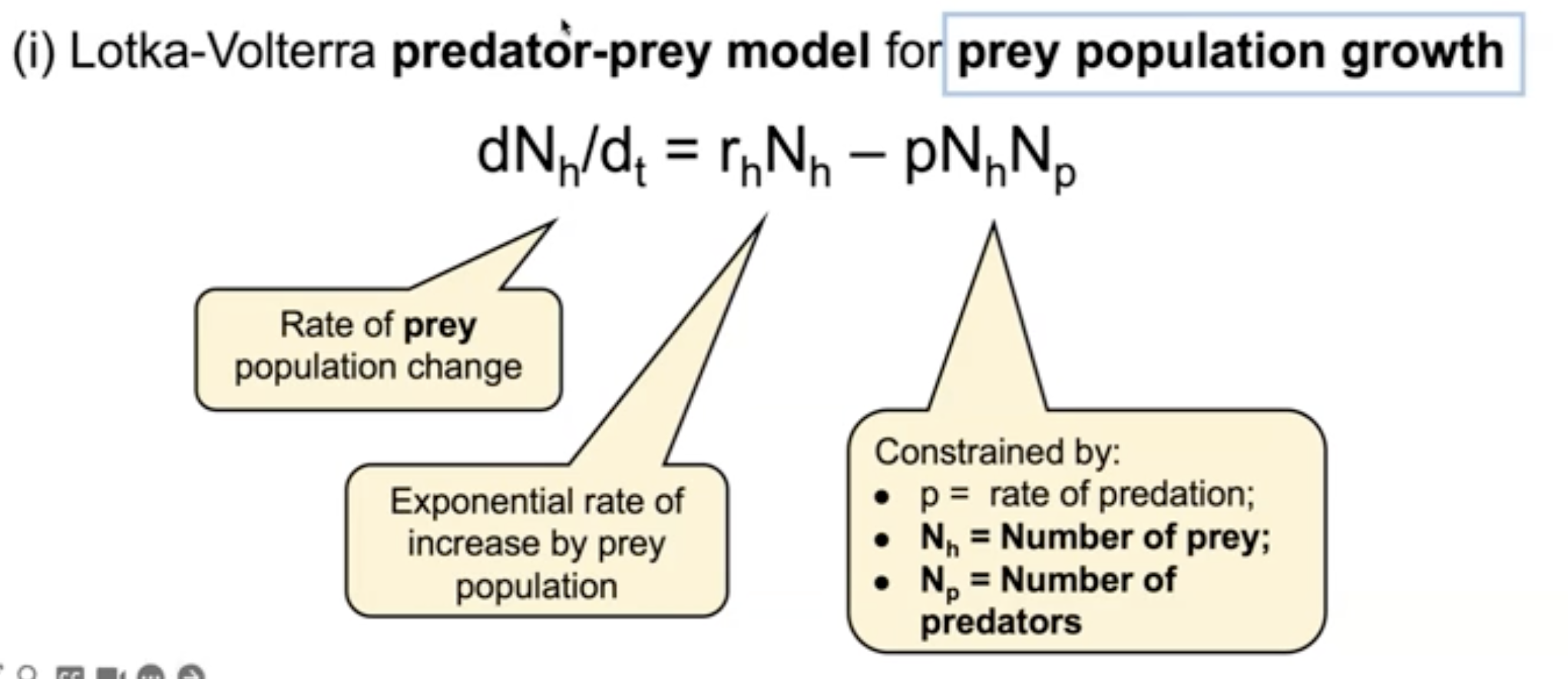 Looking specifically at prey species population change hence we subtract a component which is the impact of predation
