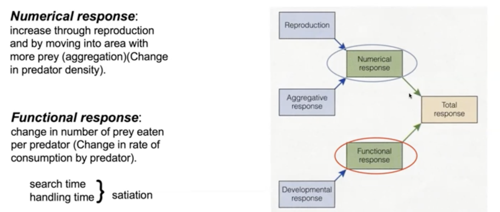 Numerical Response: How predator abundance changes relative to the number of prey available.