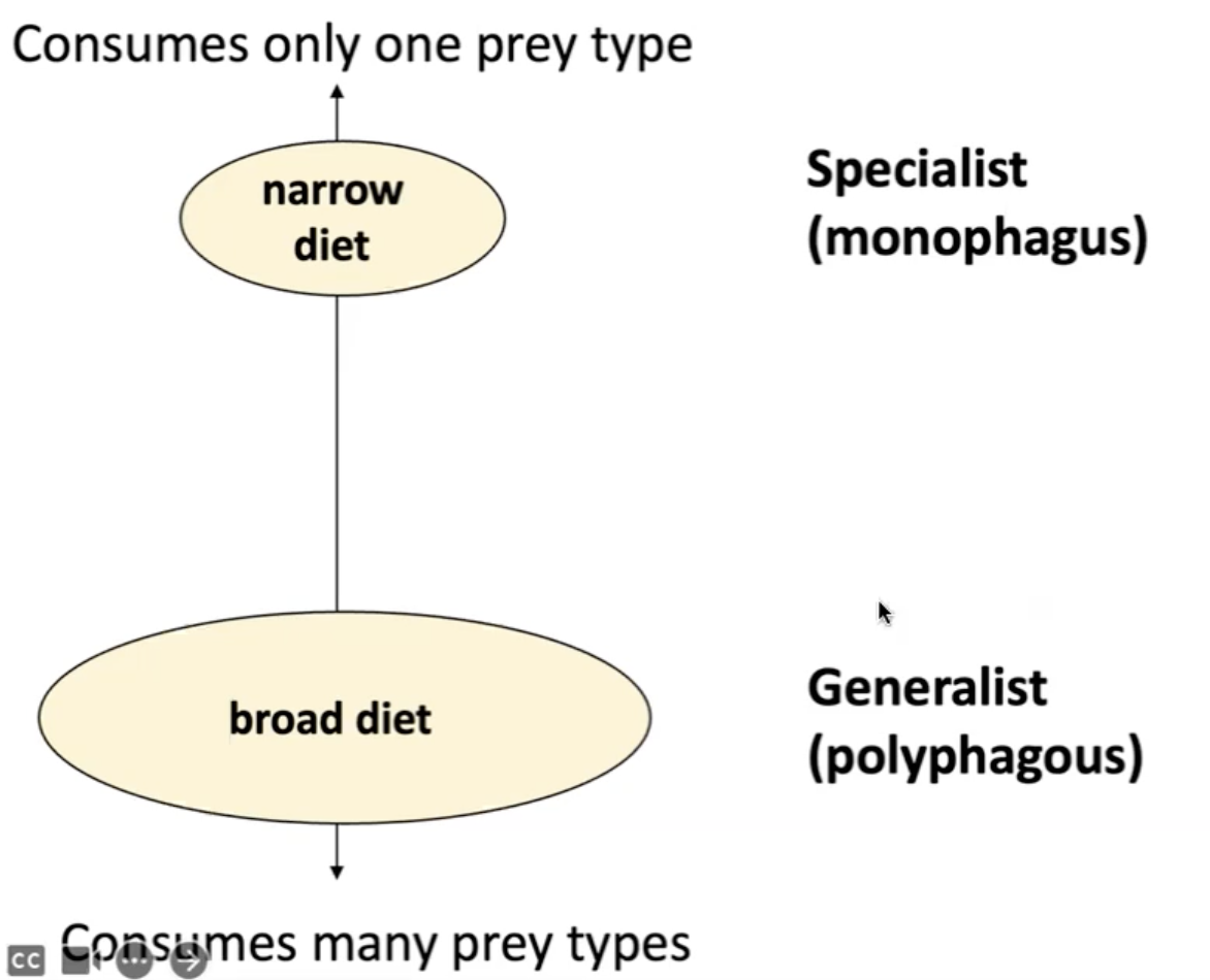 Specialists (Monophagous): Eat only a single food (e.g., anteater eating only ants).