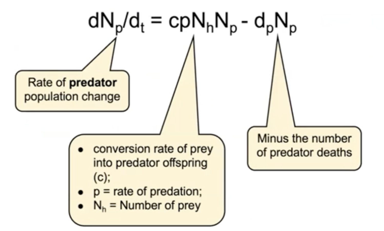 This is very similar to the prey model, but now we're looking at the rate of predator population change as a function of c