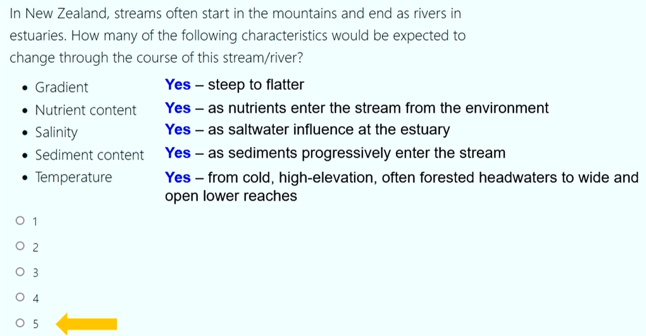 Energy sources: Headwater streams in grasslands or deserts may be rich in phytoplankton or rooted aquatic plants; in NZ forest leaf fall may be a major input