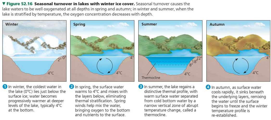 Many lakes undergo a semiannual mixing of their waters called turnover.