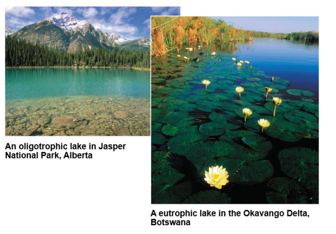 Oligotrophic lakes: Nutrient-poor, oxygen-rich.