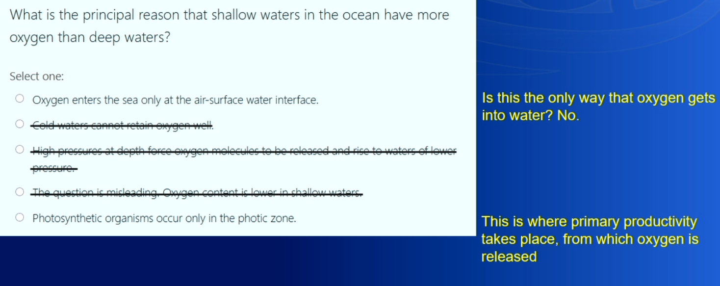 Upper: photic zone(zone light can penetrate) has sufficient light for photosynthesis.