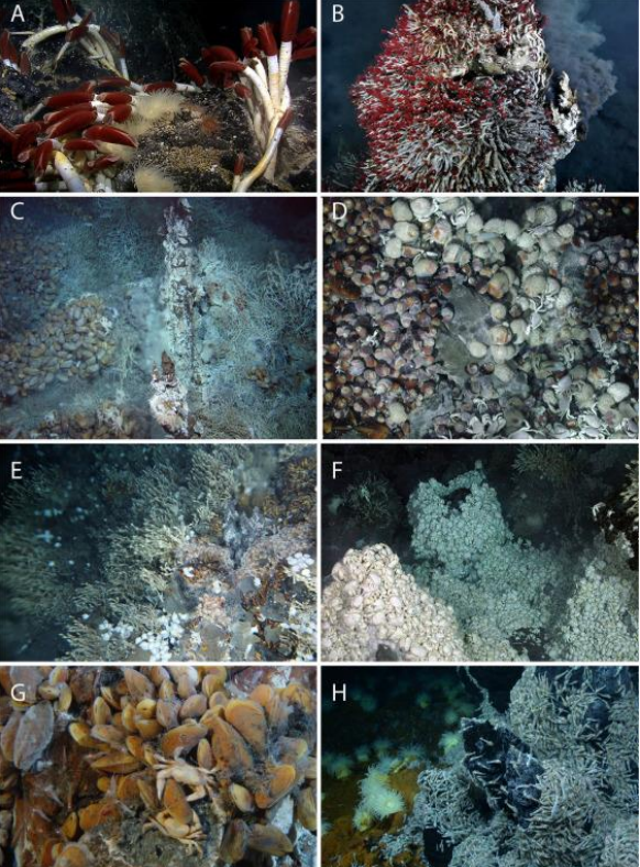 Seafloor habitat with organisms adapted to high pressure and cold temperatures.
