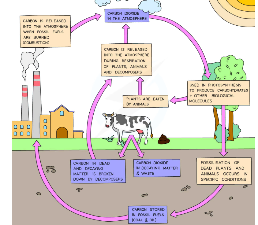 Be able to identify each process in diagrams of the carbon cycle.