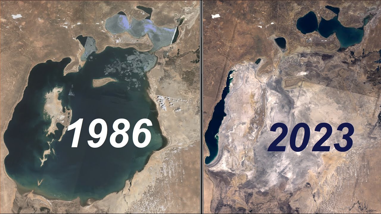 The Aral Sea shrank drastically due to water diversion for agriculture, causing ecosystem collapse.