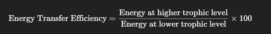 - energy transfer efficiency: calculating energy transfer through food chains/webs/trophic levels.