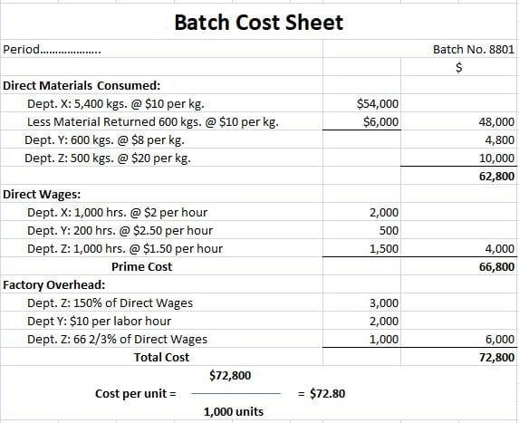 Batch costing is a method of costing used when a number of identical cost units maintain their identity throughout one or more stages of production. It is concerned with making a quantity of units.