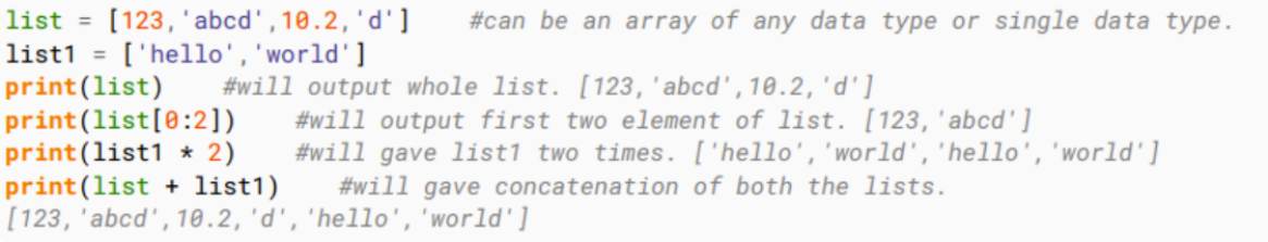 A list contains items separated by commas and enclosed within square brackets [ ]. One difference is that all the items belonging in a list can be of different data type.
