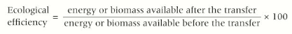 ecological efficiency - the efficiency with which biomass or energy is transferred from one trophic level to the next.