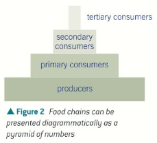 The amount of which biomass or energy converted to new biomass by each trophic level in a food chain can be represented by a pyramid of energy.