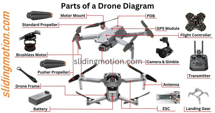 Constitutes the structure enclosing electronics and motors; commonly built with materials like carbon fiber.