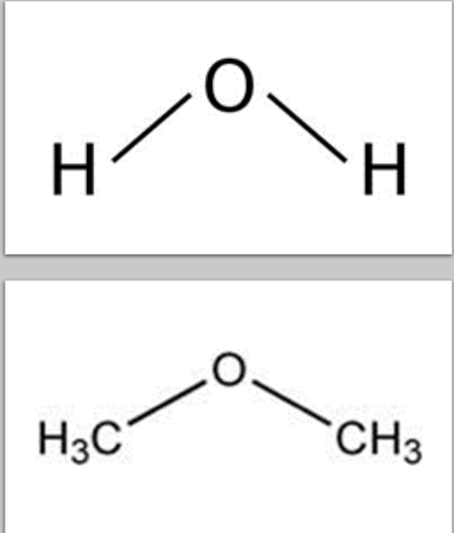 - Like water, ethers take the V shape due to paired electrons on oxygen