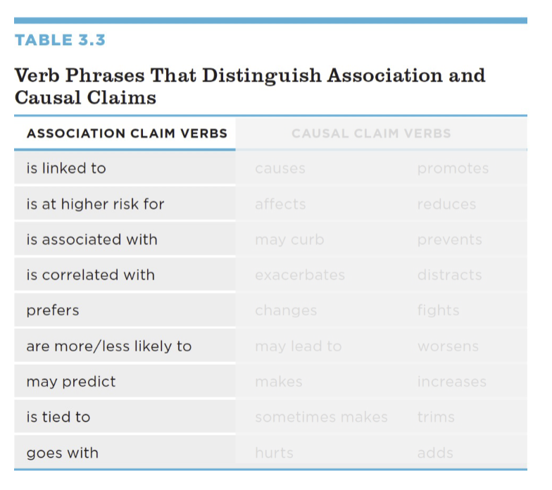association claims: assert that two variables are related to each other