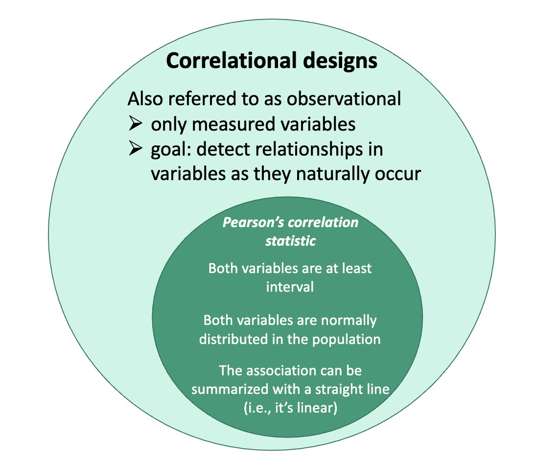 correlation statistics are only for linear relationships that can be modeled or “fit” with a straight line