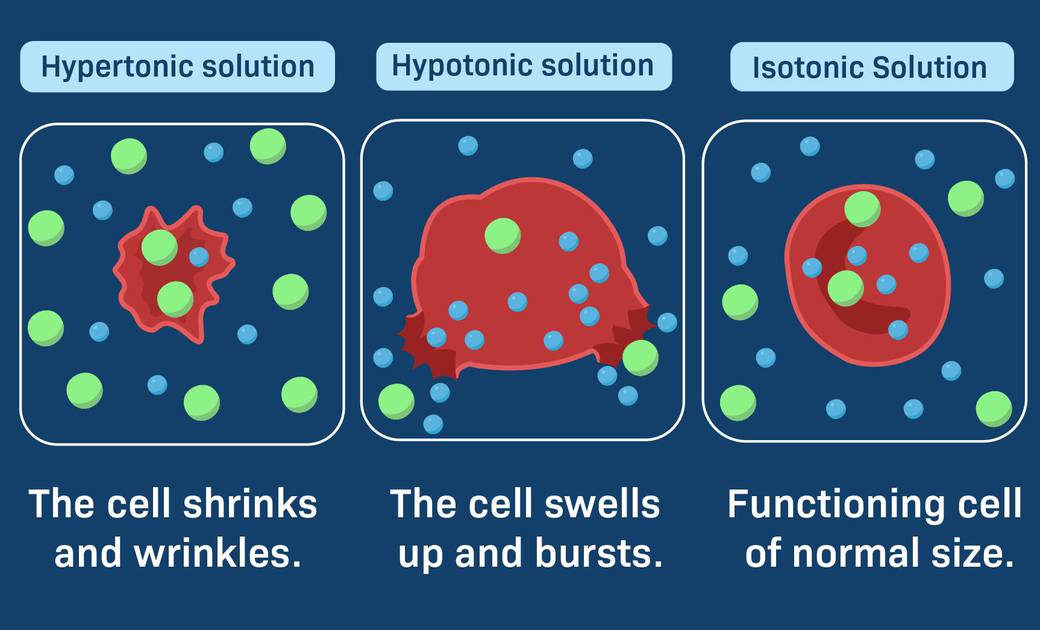 Hypertonic: High solute concentration, lots of free water. Gains water.