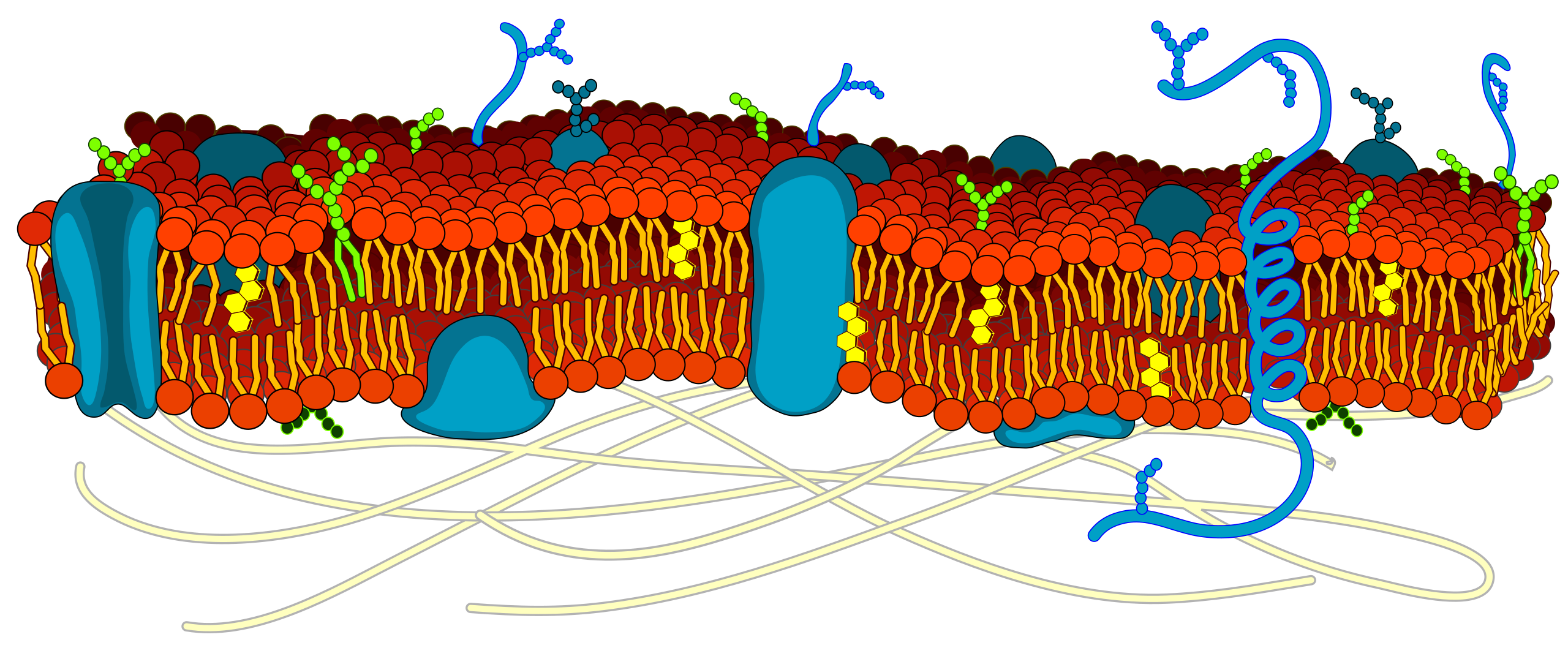 Cholesterol : helps maintain the fluidity of the cell membrane, holds fatty acids together.