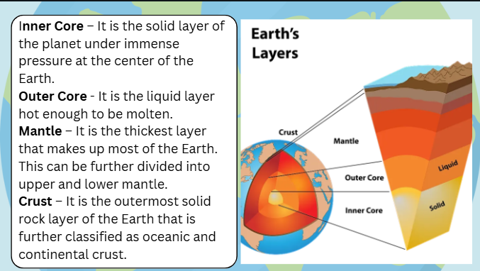 LITHOSPHERE- the rigid outer layer of the Earth made of the crust and upper mantle.