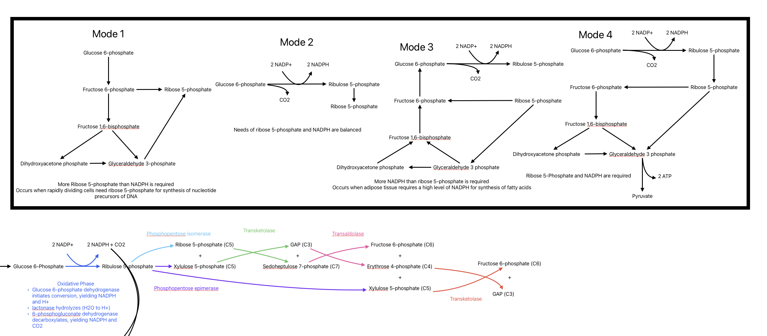 mode 4: ribose 5-phosphate and NADPH required, a bit more wishy washy