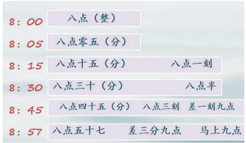 每天 měi tiān: sb 每天time ...... 我每天早上7:30 起床。