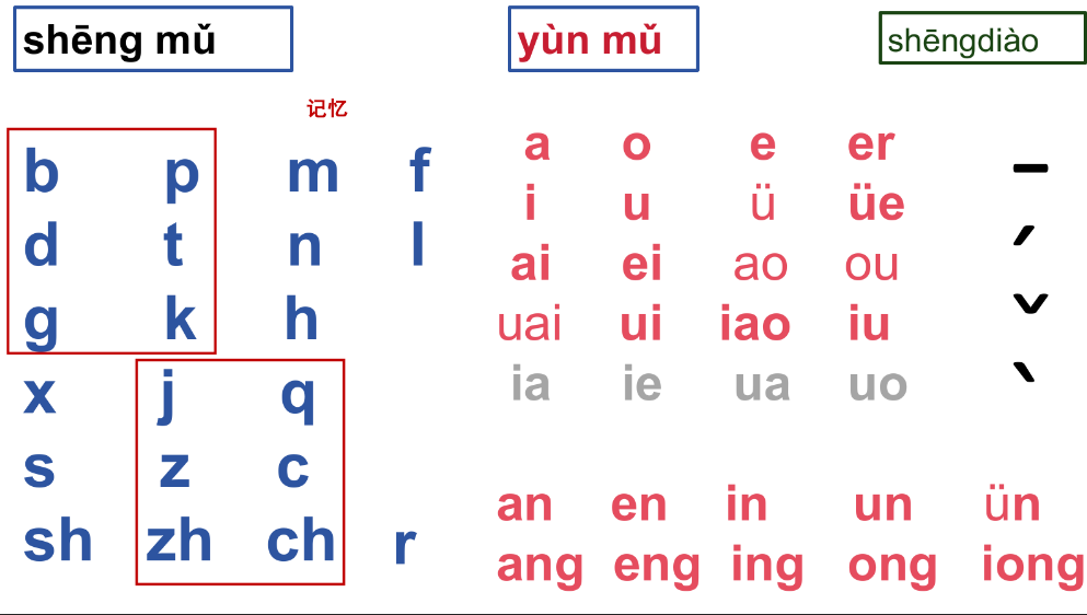initials, finals, tones: