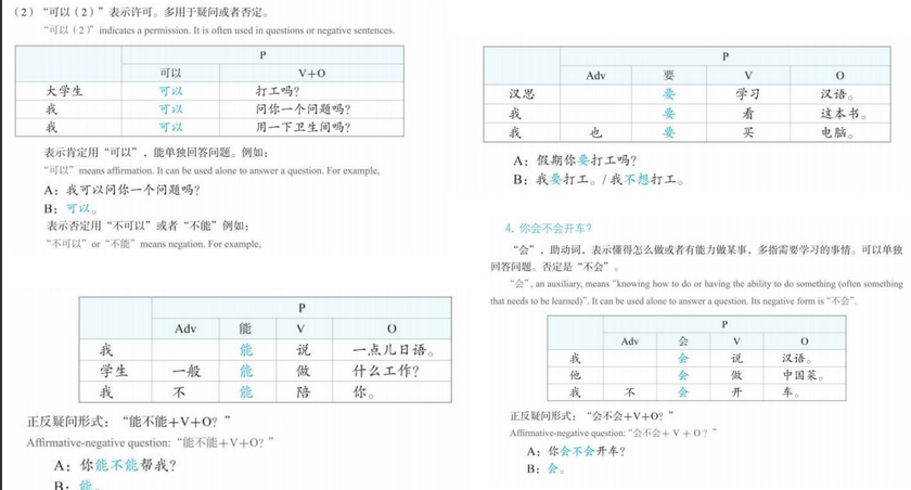 可以: 1. to indicate an ability or a possibility < 我可以帮你。2. to ask permission (put 可以 in directly before a verb to create a meaning of "may " (plus the verb).) < negative form: 不能/不可以+verb……你明天不能看电视。