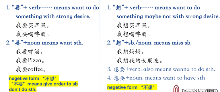 要 vs 想: