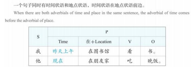 S [adv]/[time]/[at/in+place] V O: 我不学习英语