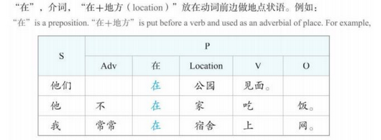 在+地方 zài +dì fānɡ < in + a place < Sb + 在 + 地方 + verb + object