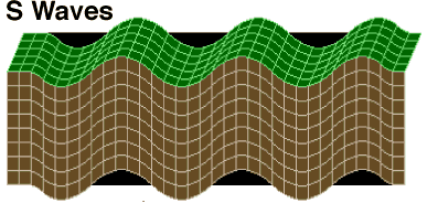 S-Waves - Shear Waves; material moves perpendicular to propagation direction