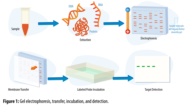 - Southern blotting is a technique used to detect specific DNA sequences in a complex mixture of DNA fragments. The fragments are separated by gel electrophoresis and ==transferred to a membrane.== The membrane is then probed with a ==labeled DNA probe== that hybridizes (attaches) to the target sequence. These are concrete results.