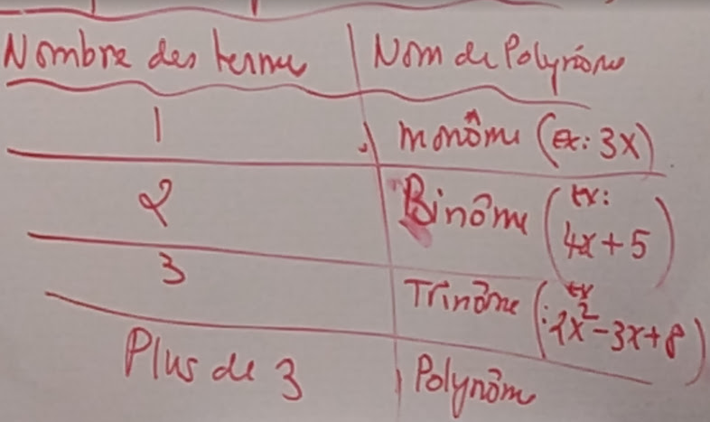 Déf: Un polynôme est une expression algébrique qui est la somme de monômes et chaque monôme est appelé TERME