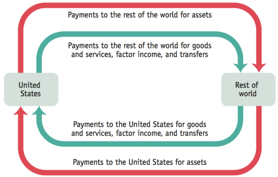 Payments for goods/services and asset transactions between the U.S. and the rest of the world.