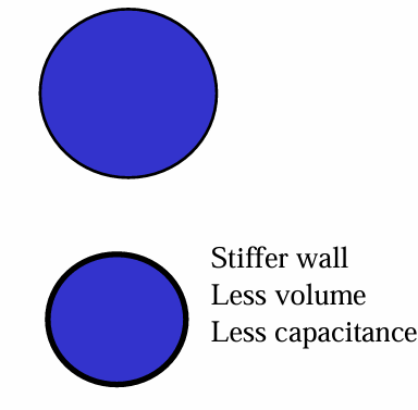 Volume of a vessel depends on the pressure in the vessel and the vessel's stiffness.